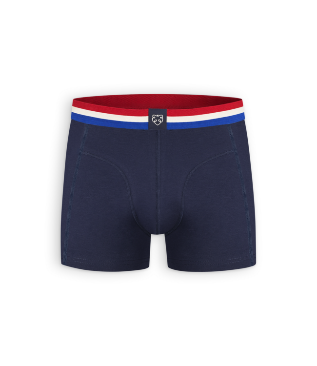 De A-dam Underwear Blue Dutch Flag boxer combineert hoog draagcomfort met een sportieve knipoog naar Nederland. De stijlvolle blauwe basis met Nederlandse vlagdetails geeft deze boxer een frisse en karaktervolle uitstraling. Perfect voor mannen die houden van comfort met een subtiel statement.