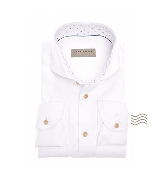 De collectie van John Miller kenmerkt zich door tijdloze kleuren en subtiele patronen. Klassiek wit, lichtblauw en zachte tinten vormen de basis, aangevuld met verfijnde dessins die nooit overheersen. Hierdoor kun je de kleding eenvoudig combineren met colberts, pantalons en knitwear. De veelzijdigheid maakt het merk aantrekkelijk voor mannen die hun garderobe graag overzichtelijk houden.