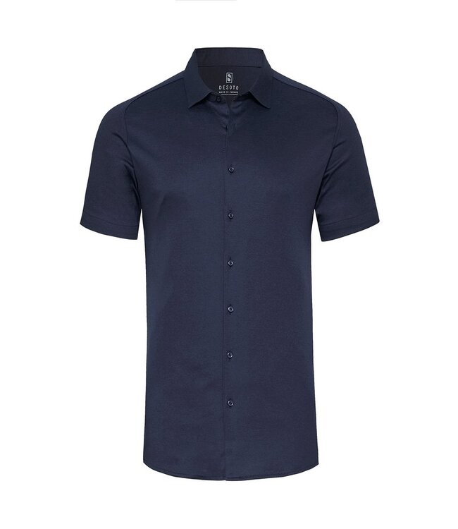 Het Desoto overhemd met korte mouw in marine combineert de nette uitstraling van een overhemd met het comfort van luxe jersey. Dit verfijnde model is gemaakt van 100% katoen in de kenmerkende Desoto kwaliteit, waardoor het uitzonderlijk zacht, soepel en comfortabel draagt.