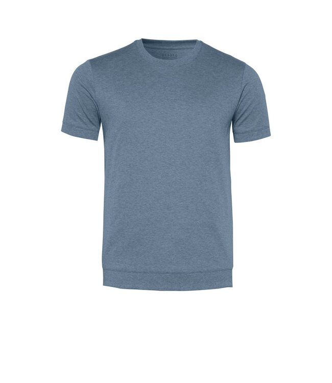 De stijlvolle jeansblauwe kleur geeft dit T-shirt een sportieve en luxe uitstraling. Ideaal te combineren met een chino, jeans of short en perfect onder een overshirt of colbert voor een smart casual look.