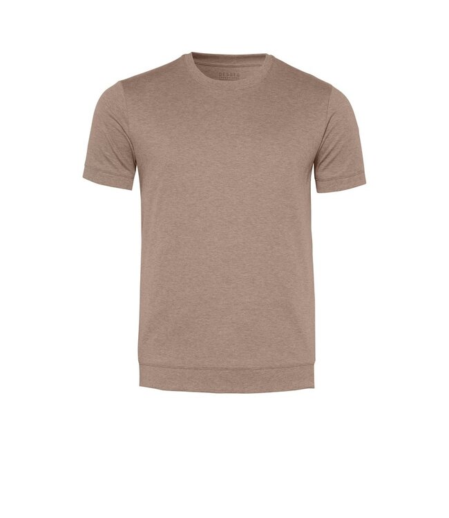 Het Desoto Luxury T-shirt in beige combineert een luxe uitstraling met uitzonderlijk draagcomfort. Dit verfijnde model is gemaakt van 100% gemerceriseerd katoen, waardoor de stof een gladde structuur, subtiele glans en hoogwaardige uitstraling krijgt.
