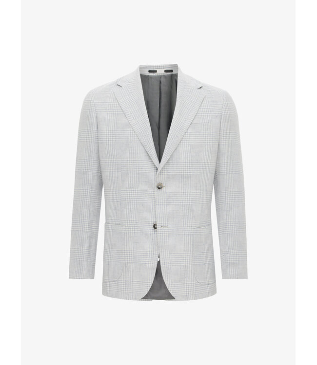 De lichtblauwe ruit geeft het colbert een frisse, moderne uitstraling zonder te overheersen. Dankzij de regular fit, notch revers, knoopsluiting en opgestikte zakken heeft het jasje een stijlvolle maar ontspannen look. Ideaal voor zowel zakelijke settings als smart-casual momenten.