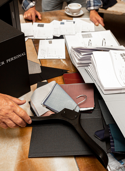 Kies uit honderden Italiaanse topstoffen: van klassiek effen tot een subtiele ruit of moderne structuur. -