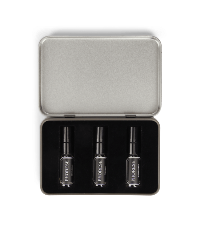 De set bevat drie samples van elk 2,5 ml, zodat je de parfums meerdere keren kunt dragen en echt kunt ervaren. Phorese is ontwikkeld vanuit één eenvoudige gedachte: één geur past niet bij elk moment. Daarom heeft elke geur een eigen karakter en gelegenheid.